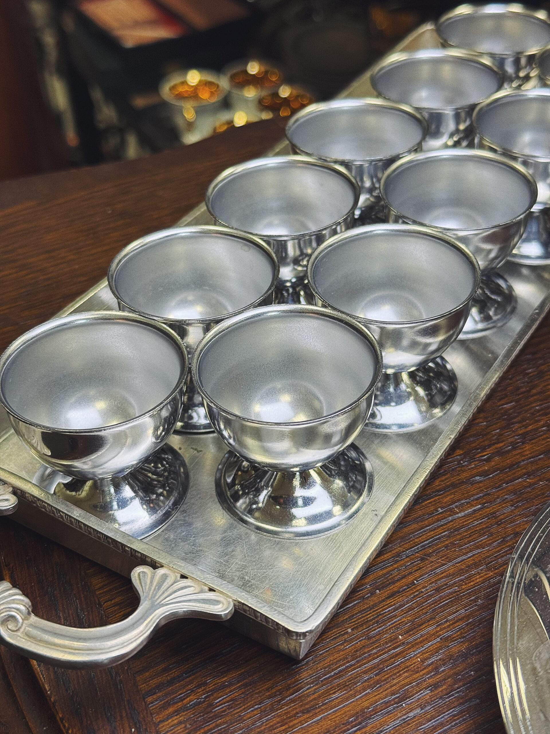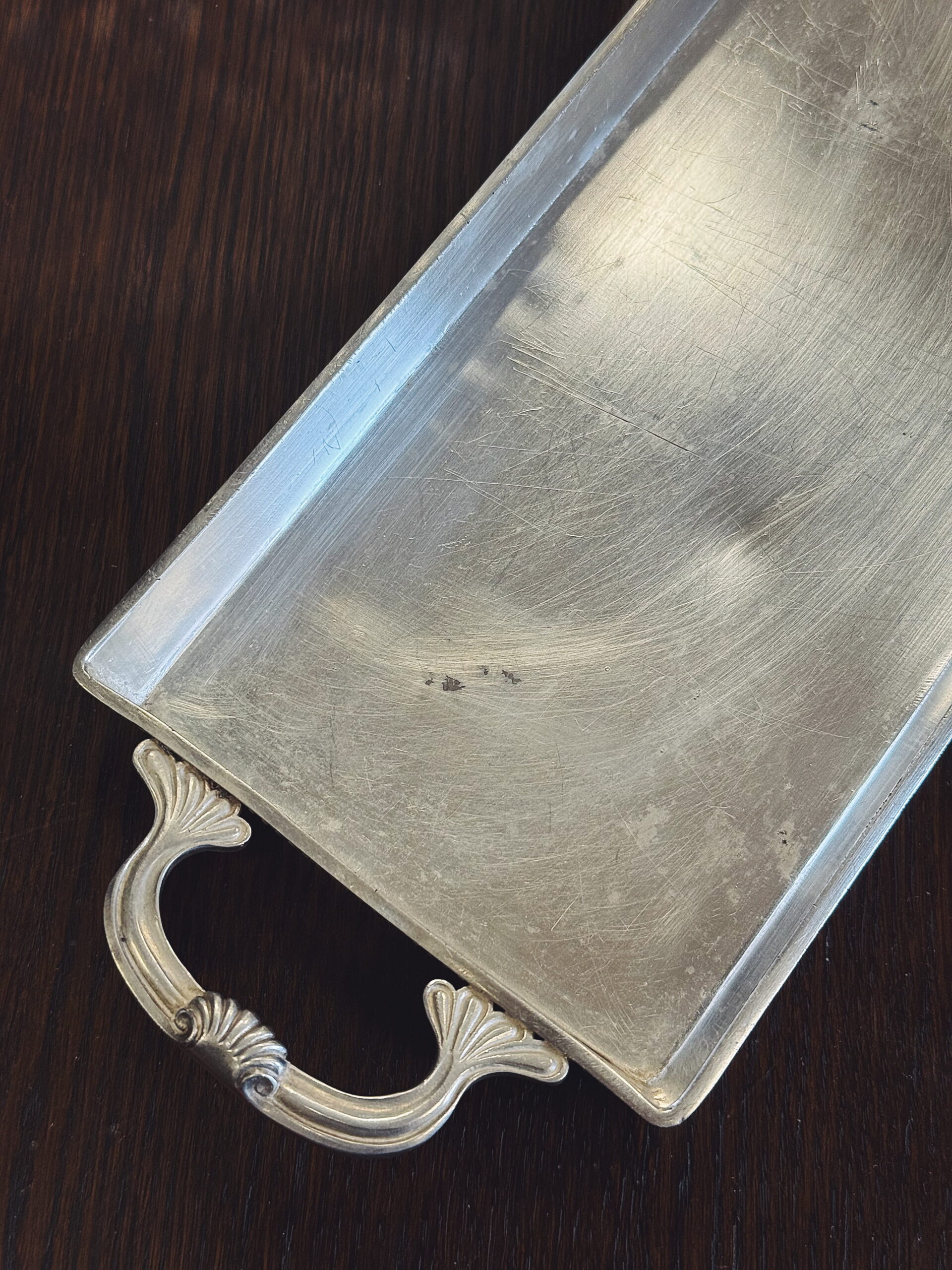Vintažinis sidabruotas serviravimo padėklas iš Prancūzijos, pagamintas žinomo gamintojo Cailar Bayard