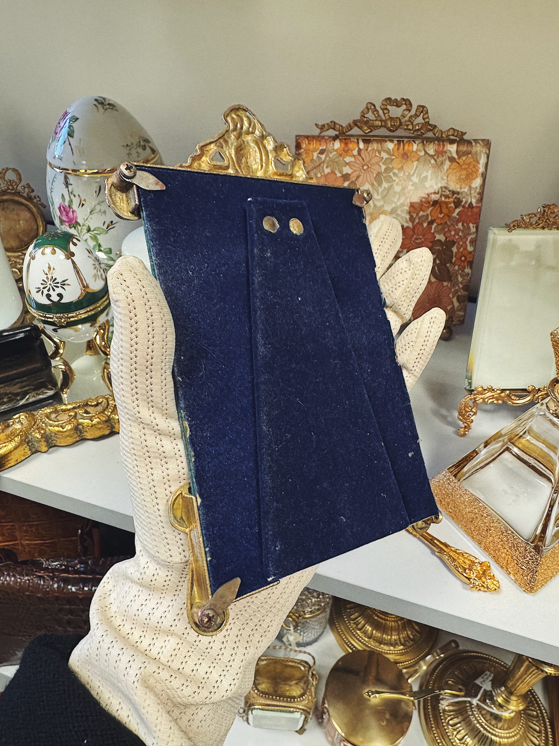 Aksomu dengta nugarėlė ir originalus stiklas išlaiko tikrą vintage charakterį