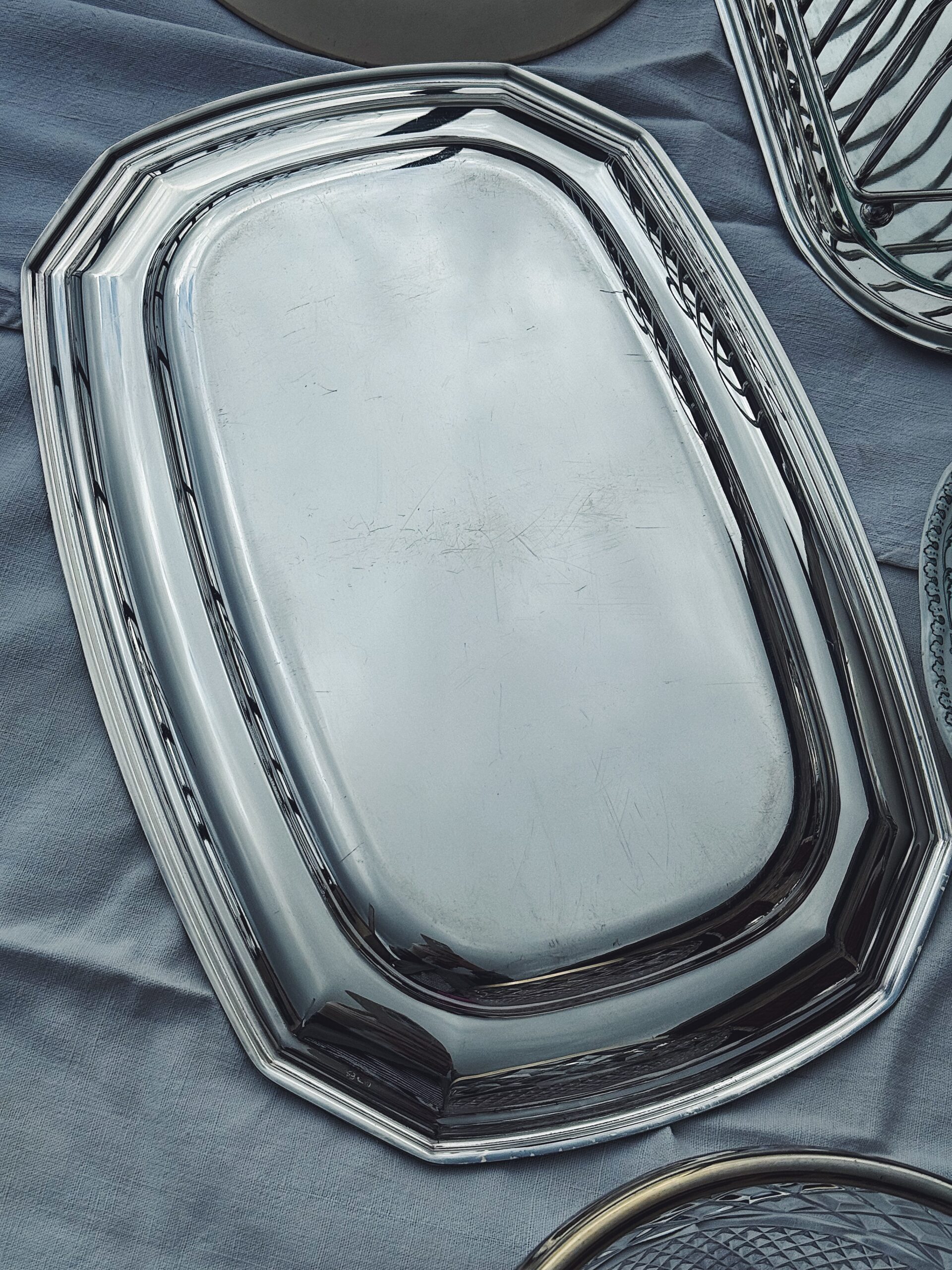 Didelis sidabruotas serviravimo padėklas. Praktiškas ir lengvai pritaikomas daugelyje interjerų