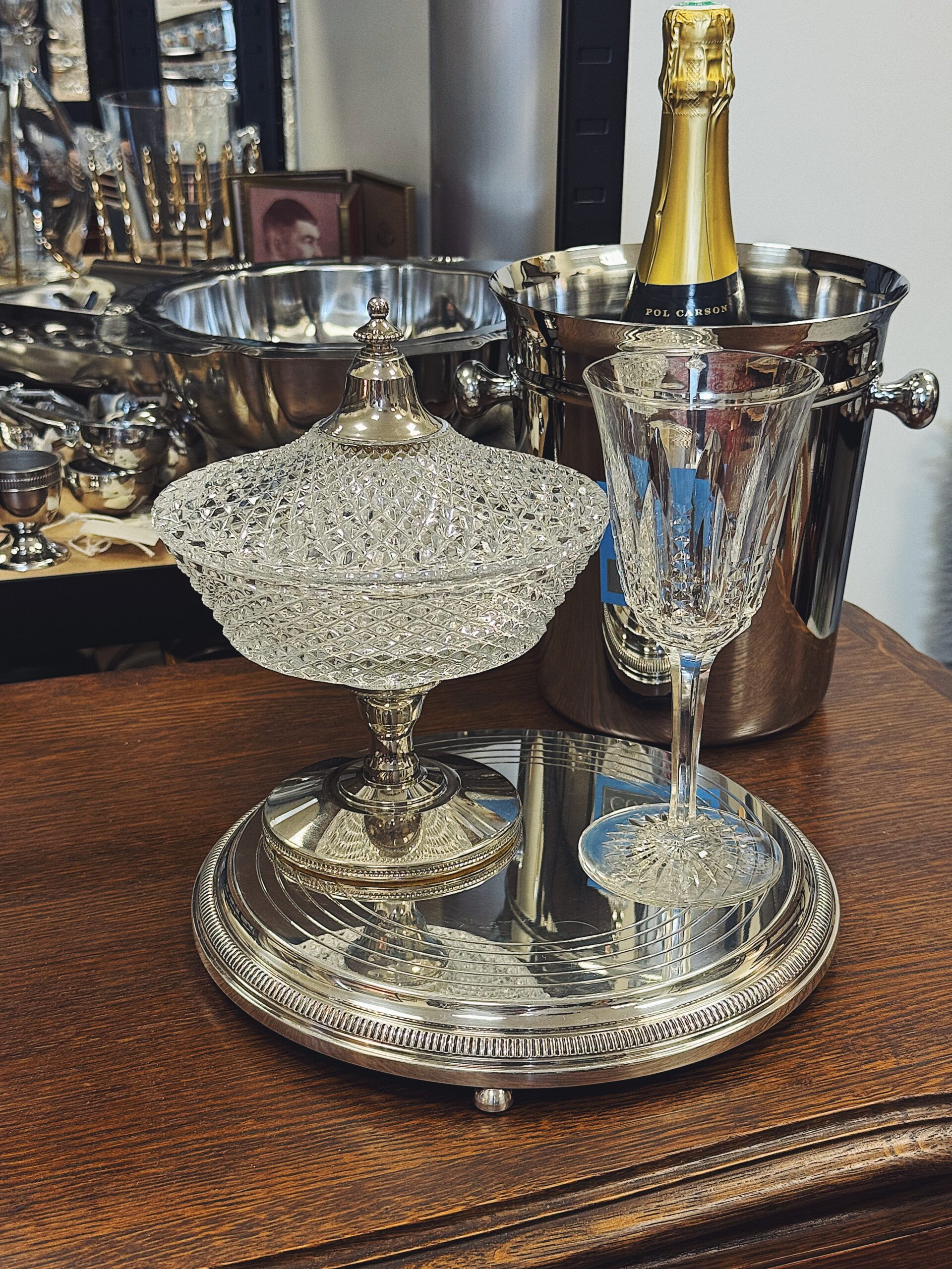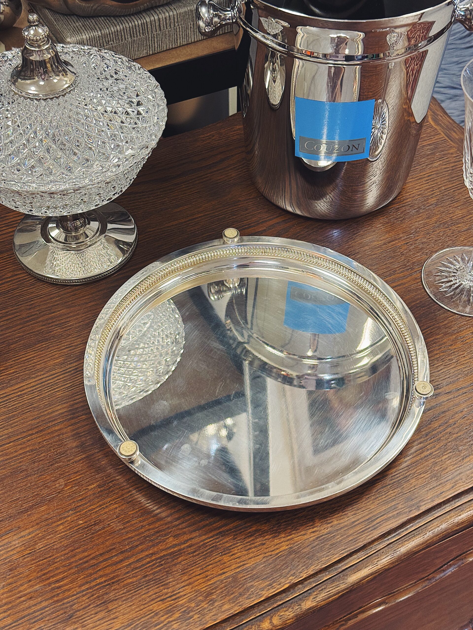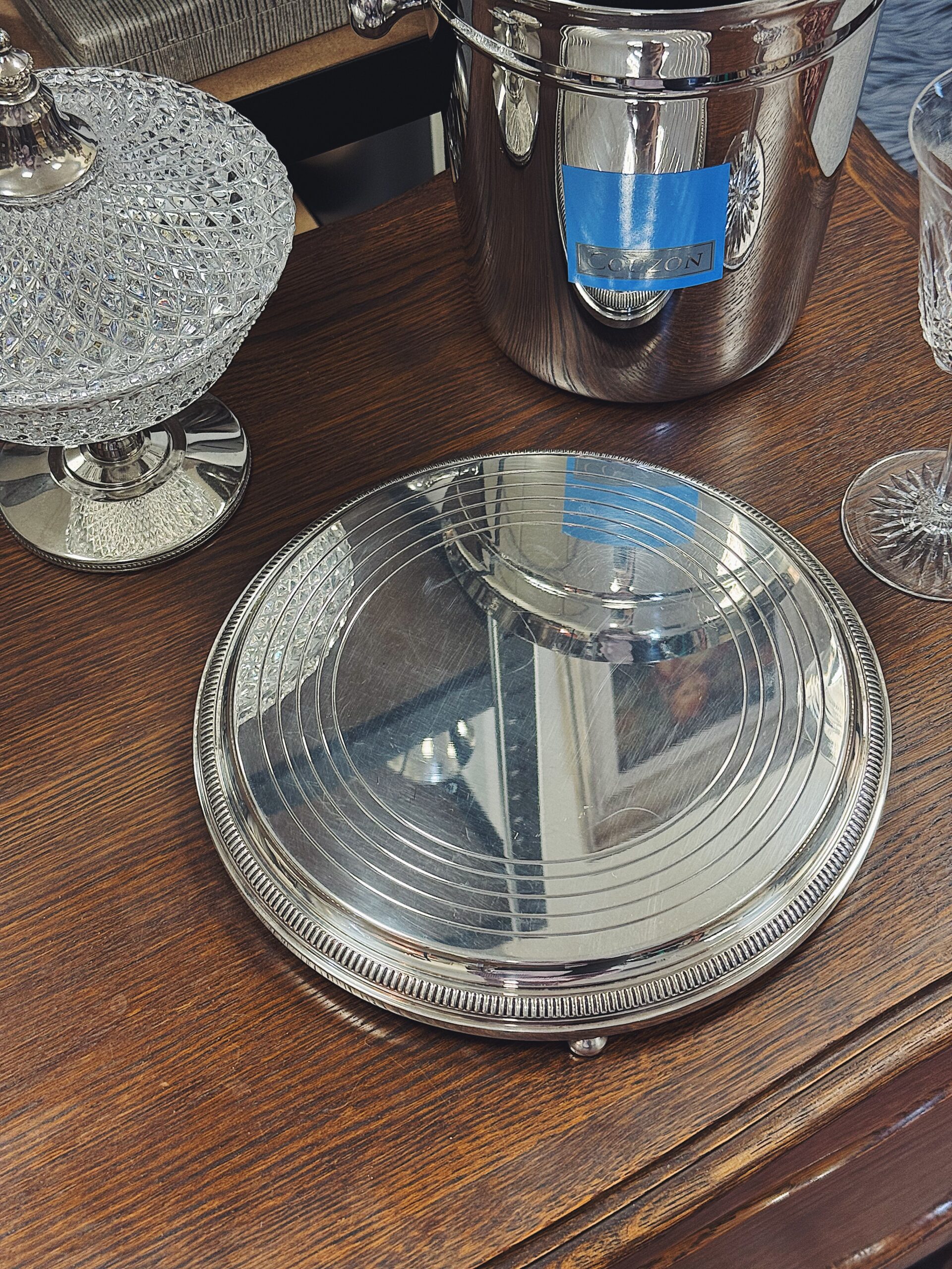 Sidabruotas padėklas ant kojelių